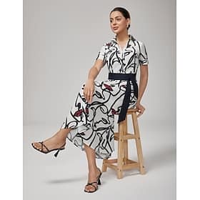 Fabric:Polyester; Look After Me:Machine wash; Gender:Women’s,Women; Style:Comtemporary,Elegant; Elasticity:Inelastic; Dresses Type:Casual Dress; Neckline:Shirt Collar; Listing Date:07/25/2025; Looseness:Regular Fit – Abstract Face Art Short-Sleeve Shirt Dress Shop, Clothing, Dresses, Maxi Dresses