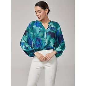 Season:Spring,Summer; Fabric:Polyester; Sleeve Length:Long Sleeve; Look After Me:Machine wash; Gender:Female; Elasticity:Inelastic; Occasion:Casual; Pattern:Floral; Neckline:V Neck; Listing Date:07/31/2025 – Abstract Floral Chiffon Crop Top Shop, Clothing, Tops, Blouses