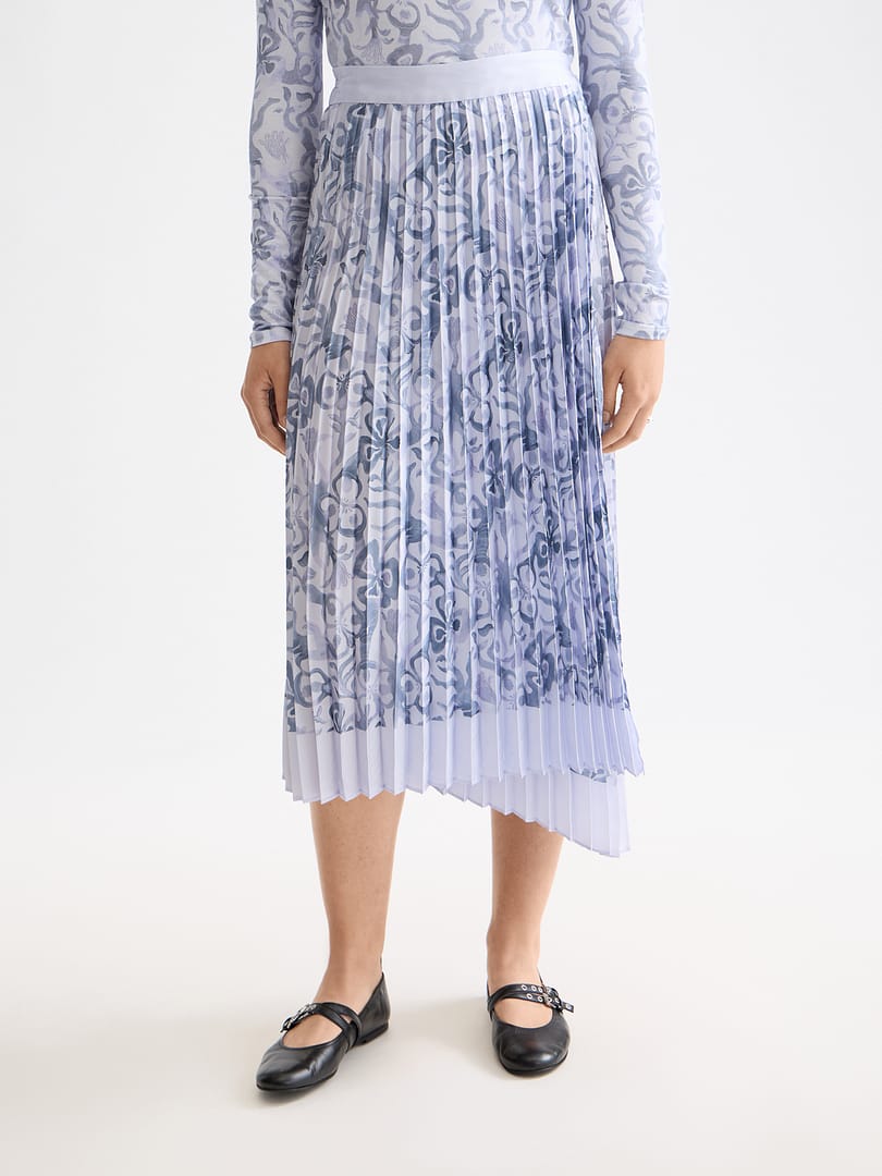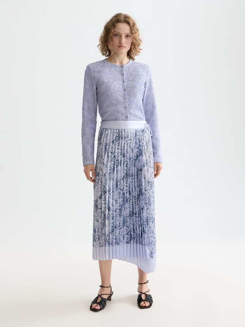 Asymmetrical pleated wrap midi skirt