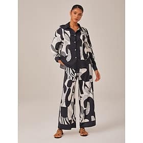 Season:Summer; Fabric:Satin; Sleeve Length:Long Sleeve; Look After Me:Machine wash; Gender:Women’s,Female; Style:Vacation,Bohemia,Elegant; Elasticity:Inelastic; Tops Type:Casual Shirt,Button Down Shirt; Occasion:Casual; Pattern:Abstract,Abstract Art; Design:Buttons; Neckline:Shirt Collar; Sleeve Type:Bishop Sleeve; Brand:Ador; Listing Date:05/15/2025; Looseness:Loose Fit – Black And White Geometric Satin Set Shop, Clothing, Matching Sets