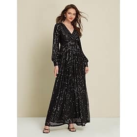 Black Sequin Party/Wedding Guest V Neck Long Sleeve Maxi Dress dress to impress 2024 > Clothing > Women’s Clothing > Dresses > Party Dresses