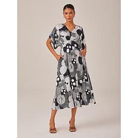 Black White Abstract Polka Dot V Neck Midi Dress > Shop > Clothing > Dresses > Midi Dresses