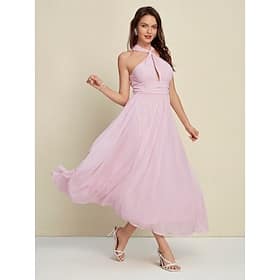 Chiffon Wedding Guest Halter Neck Sleeveless Midi Dress > Women’s > Women’s Clothing > Dresses > Casual Dresses