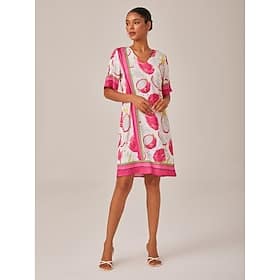 Season:Summer; Fabric:Satin; Sleeve Length:Short Sleeve; Dress Length:Knee-length; Look After Me:Machine wash; Gender:Women’s,Female; Style:Vacation; Elasticity:Inelastic; Occasion:Casual; Waistline:No Waist; Dresses Type:Casual Dress,Loose Dress; Pattern:Fruit; Design:Print; Neckline:V Neck; Sleeve Type:Drop Shoulder; Brand:Ador; Listing Date:05/09/2025; Dress Length Type:Knee Length Dress; Fabric Properties:LuxeSatin – Discover the essence of quiet luxury in our exclusive Subtly Glossy Luxe Satin, it is drapey and sleek like silk. – Dragon Fruit Placed Print V-neck Mini Dress Shop, Clothing, Dresses, Mini Dresses