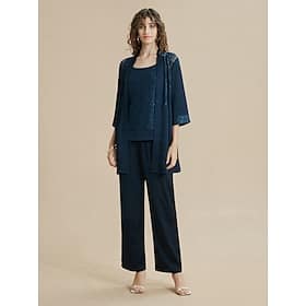 Season:Spring Fall; Fabric:Lace,Satin; Sleeve Length:3/4 Length Sleeve; Look After Me:Machine wash,Hand wash; Gender:Women’s; Style:Daily; Elasticity:Micro-elastic; Occasion:Work,Office; Details:Top,Bottom; Fit Type:Regular Fit; Pattern:Plain; Neckline:Round Neck; Pants Type:Pants Trousers; Front page:FF; Listing Date:11/27/2023; Production mode:External procurement; Bust:; Hips:; Length [Bottom]:; Length [Top]:; Shoulder Width:null; Sleeve:; Waist:; Fit US Size:; Fit UK Size: – Elegant Navy Satin Mother of the Bride Set Shop, Clothing, Matching Sets