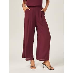 Season:Summer,Spring; Fabric:Chiffon; Look After Me:Machine wash; Gender:Women’s,Female; Style:Elegant; Elasticity:Inelastic; Occasion:Formal; Fit Type:Relaxed Fit; Pattern:Plain; Brand:Ador; Pants Type:Loose,Culottes Wide Leg; Listing Date:06/19/2025; Pants Length:Full Length; Looseness:Loose Fit – Fluid Burgundy Chiffon Wide Pants Shop, Clothing, Pants & Shorts