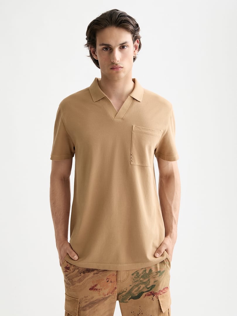 Crafted from soft piqué, this relaxed polo features garment-dye depth and a chest pocket.