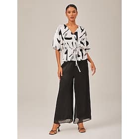 Season:Summer; Fabric:Chiffon; Sleeve Length:Short Sleeve; Look After Me:Machine wash; Gender:Women’s,Female; Style:Vacation,Elegant; Elasticity:Micro-elastic; Tops Type:Casual Shirt; Occasion:Casual; Pattern:Abstract,Geometric,Geometric Pattern; Design:Printing,Dolman; Neckline:V Neck; Sleeve Type:T-shirt Sleeve,Batwing Sleeve; Brand:Ador; Listing Date:04/24/2025; Fabric Properties:WhisperFlow Chiffon – Weightless and flowy, adding a hint of airy elegance to your look. – Geometric Print Vacation Two-Piece Set Shop, Clothing, Matching Sets