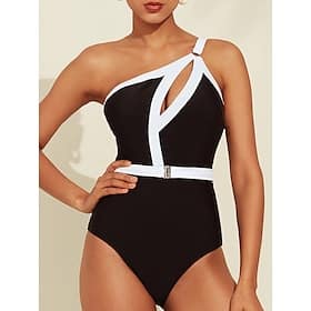 Season:Summer; Fabric:Chinlon,Spandex; Gender:Women’s; Swimwear Category:One shoulder onepiece; Style:Beach Wear,Vacation,Beach,Without Ring,Hepburn; Elasticity:High Elasticity; Occasion:Pool,Swimming Pool,Beaches; Details:Removable Pad; Pattern:Contrast Color; Design:Hole; Neckline:One Shoulder; Trends:New; Brand:Ador; Listing Date:02/18/2024; Hips:; Length:; SizeChart1_ID:2:186127; Fit US Size:; Fit UK Size:; Print Type:non-printing; Bust:; Looseness:Slim Fit; Inclusion:The fabric offers exceptional elasticity and impressive flexibility.,Adjustable Shoulder Strap; Fabric Properties:Nylon – Good moisture absorption, stable shrinkage, slippery feel, high abrasion resistance – Hepburn Contrast Hole One Shoulder Swimsuit Shop, Clothing, Swimwear, One Pieces