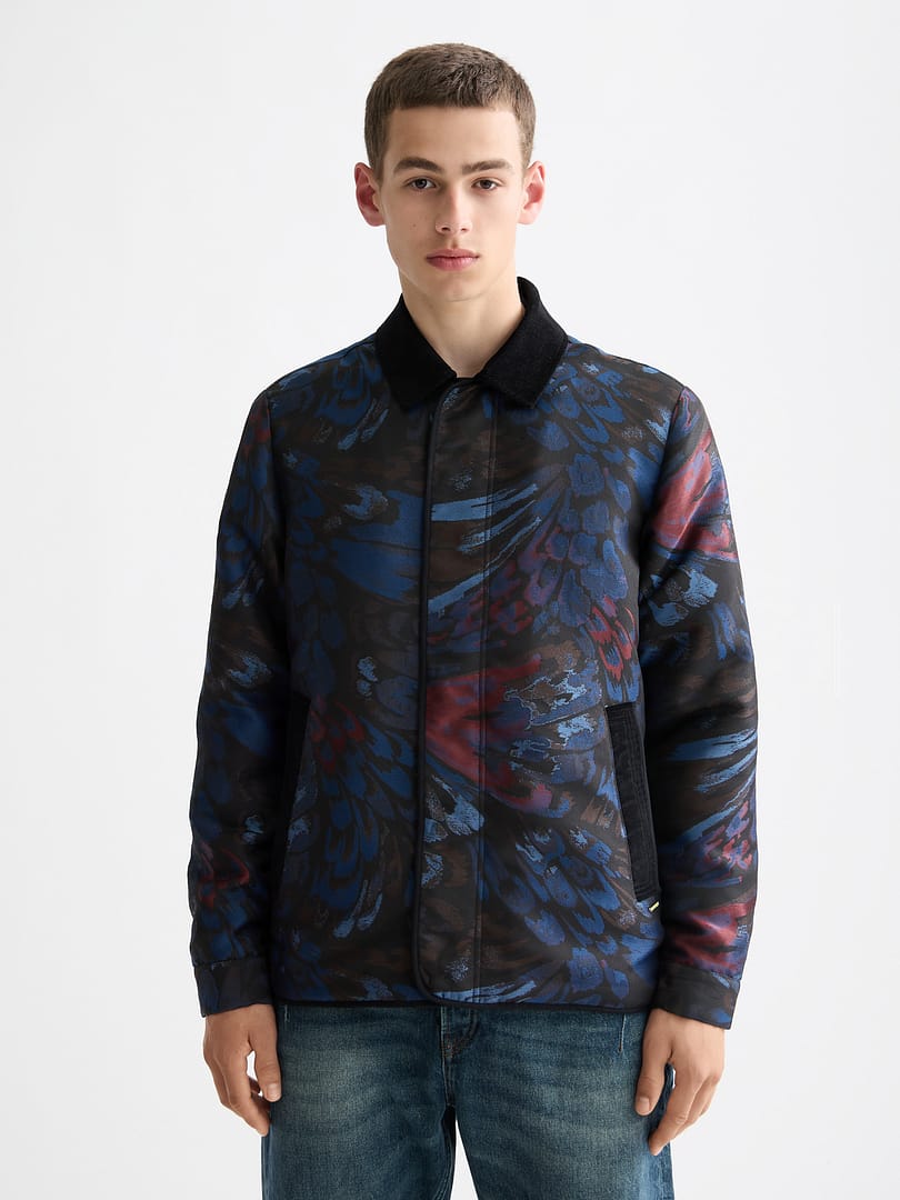 A lightweight blouson with jacquard feather patterning and a sleek, modern cut.