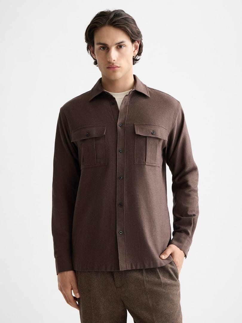 A relaxed shirt in soft melange fabric, designed for laid-back layering.