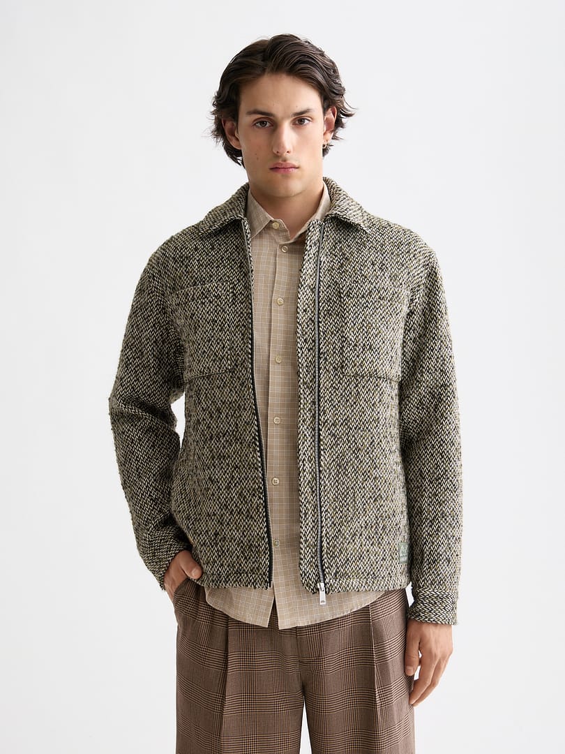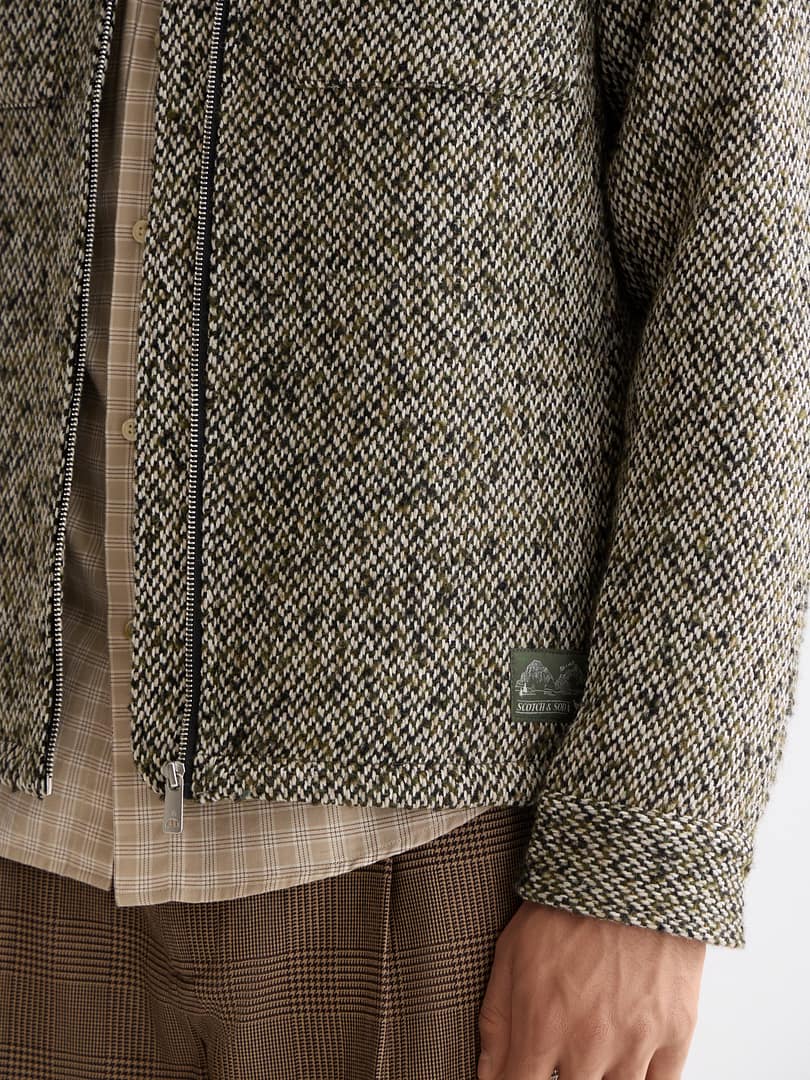 A textured wool-blend overshirt in multicoloured tweed for an elevated layer.