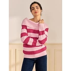 Season:Fall / Winter; Fabric:Wool Blend; Sleeve Length:Long Sleeve; Look After Me:Dry clean only; Gender:Women’s; Style:Knitwear; Elasticity:Stretchy; Occasion:Causal; Pattern:Stripe; Design:Off the Shoulder; Neckline:Off Shoulder; Sleeve Type:Set-in Sleeves; Brand:Ador; Listing Date:08/26/2024; Knit Style:Ribbed; Looseness:Regular Fit; Inclusion:The fabric offers exceptional elasticity and impressive flexibility. – Off Shoulder Ribbed Knit Wool Blend Fall / Winter Causal Rose Red Sweater Shop, Clothing, Knitwear, Sweaters