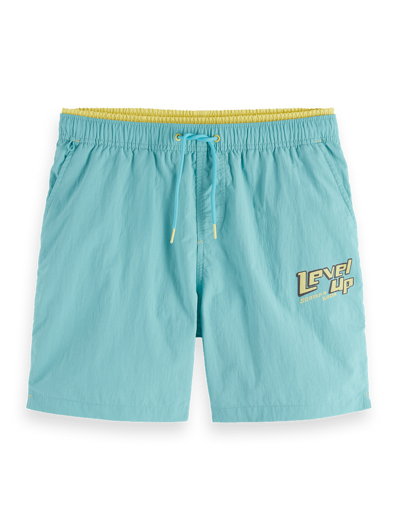 Featuring a graphic print, these mid-length swim shorts add a modern touch to poolside styling. Crafted from lightweight, quick-dry fabric for all-day comfort.