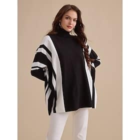 Season:Fall,Winter,Spring; Fabric:Polyester,Acrylic; Sleeve Length:Long Sleeve; Look After Me:Wash with similar colours; Gender:Women’s; Size Suggestion:standard size, select your usual size; Style:Casual,Simple fashion style,Bohemian Type,Soft,Fashion; Elasticity:Micro-elastic; Occasion:Daily routine,Travel (journey),Weekend,Going out,Daily,Work; Sweaters Type:Pullover Sweater Jumper; Top Length:Long; Fit Type:Loose Fit; Pattern:Plaid,Striped,Striped Pattern; Design:Knitted,Check Pattern; Neckline:Turtleneck; Trends:Loose; Brand:Ador; Front page:FF; Listing Date:10/20/2023; Production mode:External produce; Bust:; Length:; Knit Style:Ribbed – Polyester Acrylic Ribbed Knit Turtleneck Sweater Women’s, Women’s Clothing, Sweaters & Cardigans, Sweaters