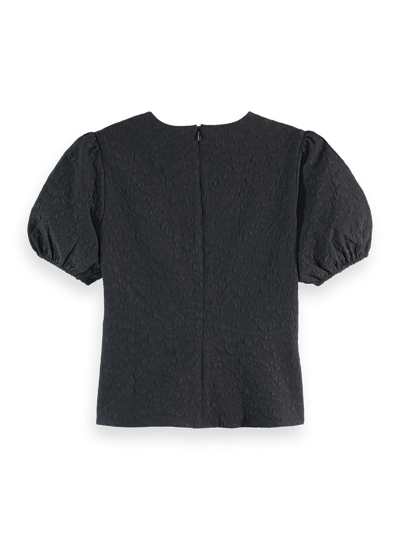 This textured top features soft puff sleeves, bringing subtle volume and a refined silhouette.