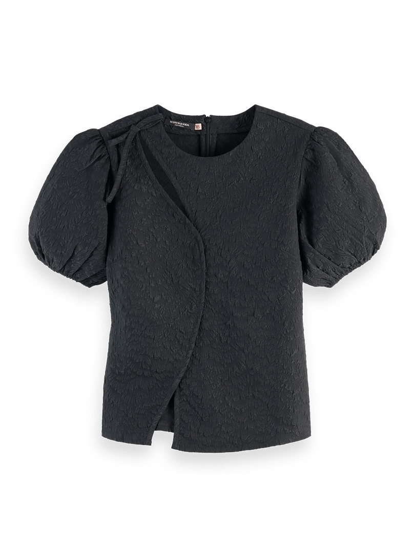 This textured top features soft puff sleeves, bringing subtle volume and a refined silhouette.