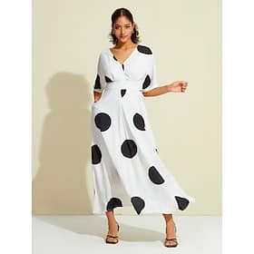Satin Hem Polka Dot Waistband V Neck Maxi Dress > Women’s > Women’s Clothing > Dresses > Print Dresses