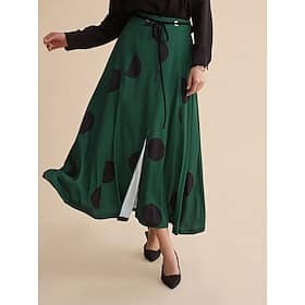 Season:Spring Fall; Fabric:Satin; Dress Length:Maxi; Look After Me:Machine wash; Gender:Women’s; Style:Casual Daily; Elasticity:Inelastic; Details:Peplum; Waistline:Mid Waist; Pattern:Polka Dot; Design:Belted,Split Ends; Listing Date:07/24/2024; Looseness:Loose Fit; Inclusion:Elasticated Waistband; Fabric Properties:LuxeSatin – Discover the essence of quiet luxury in our exclusive Subtly Glossy Luxe Satin, it is drapey and sleek like silk. – Satin Polka Dot Peplum Belted Split Ends Maxi Skirt Women’s, Women’s Clothing, Bottoms, Skirts