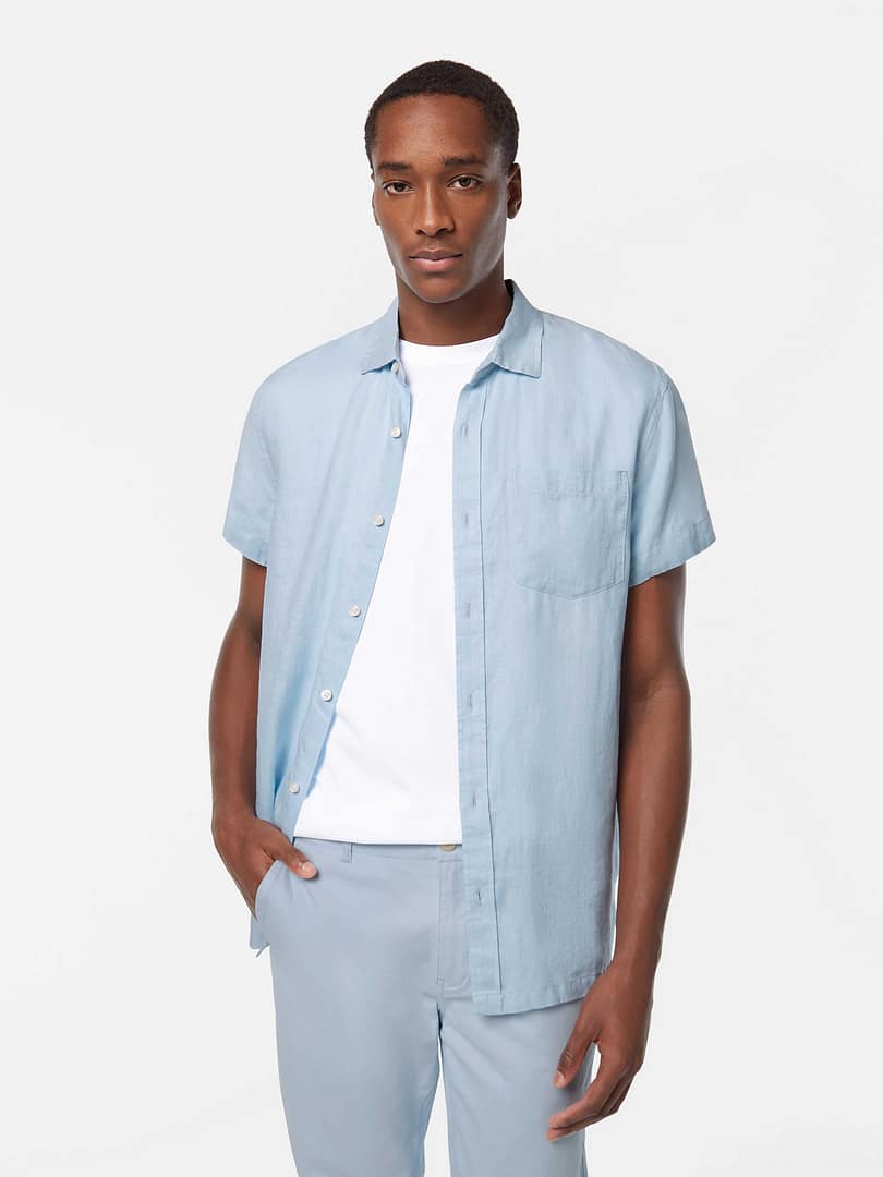 A summer essential, this short-sleeved linen shirt delivers effortless comfort and timeless style.