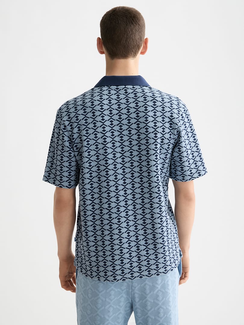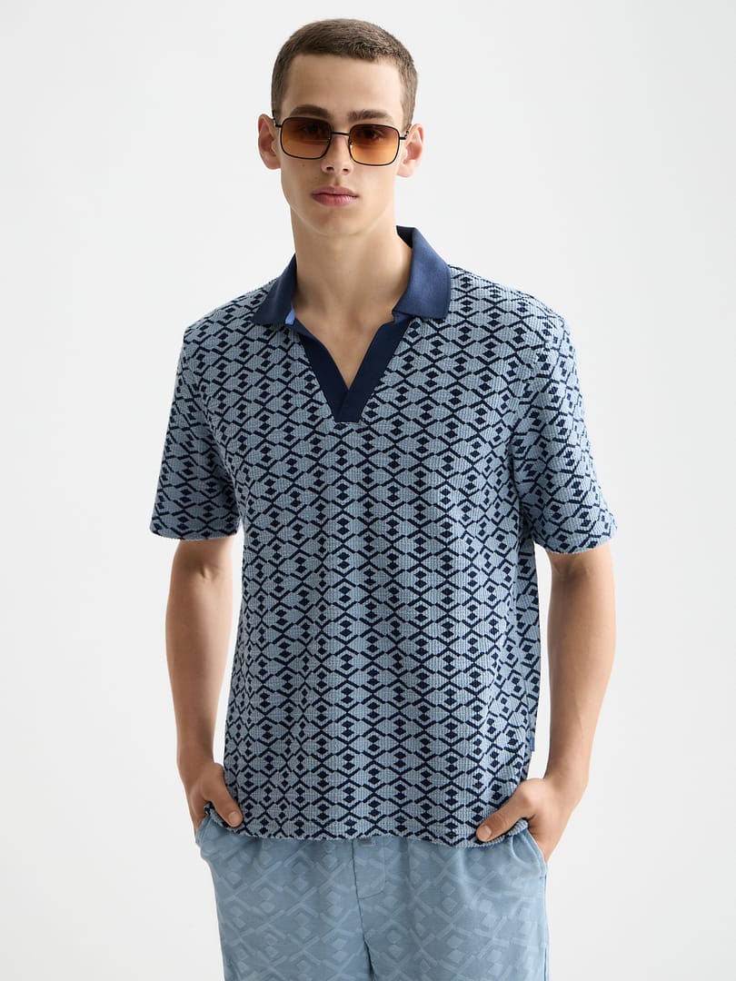 Cut from soft towelling fabric, this relaxed polo features a minimal print for standout style.