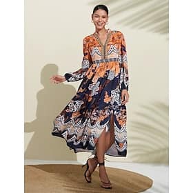 V Neck Print Maxi Wedding Guest Dress > Women’s > Women’s Clothing > Dresses > Print Dresses