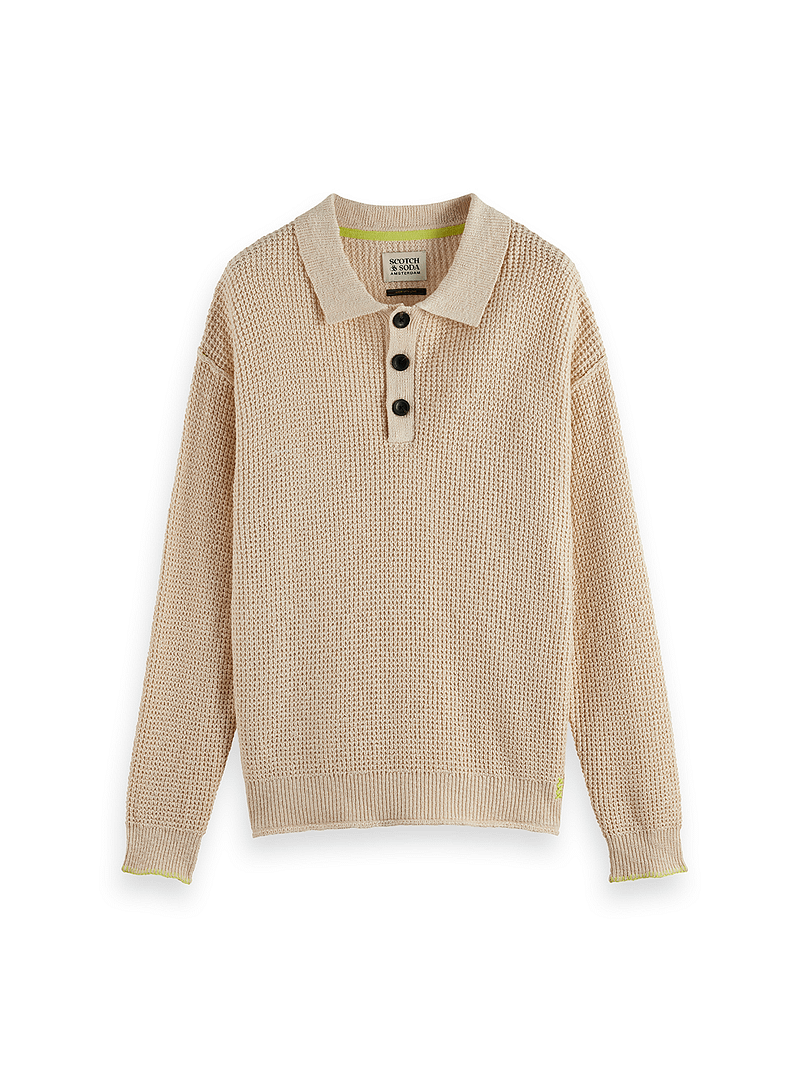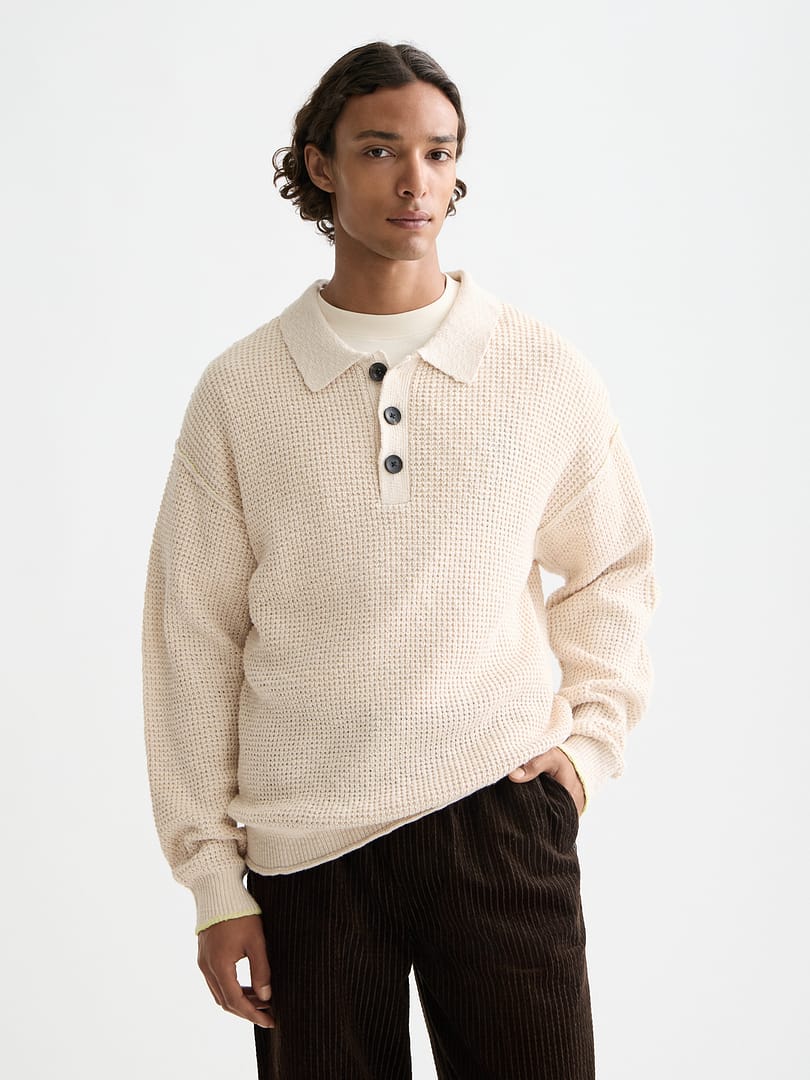 Featuring dropped shoulders and waffle texture, this long-sleeve polo brings a fresh silhouette.