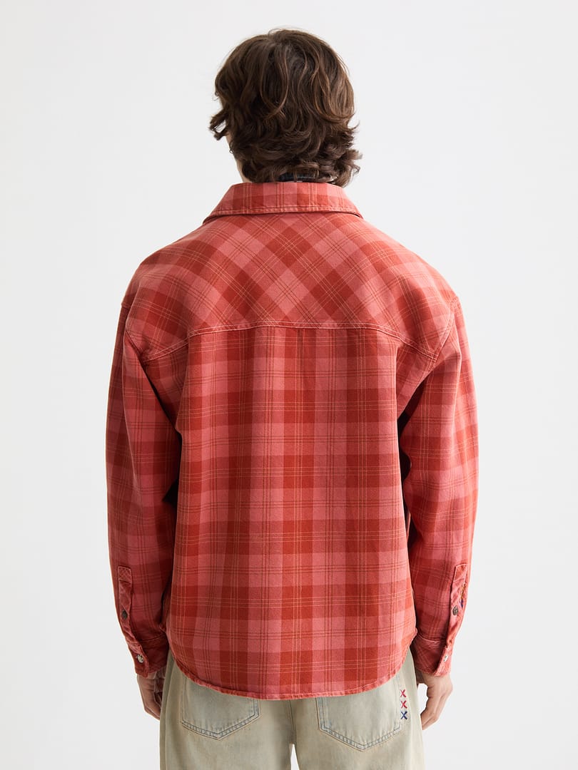 Washed denim checked overshirt
