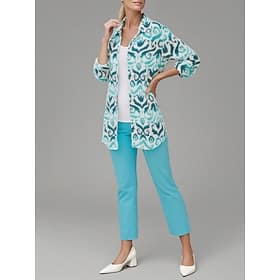 Listing Date:09/05/2025 – Women Turquoise Print Shirt Jacket Three Quarter Sleeves Shop, Clothing, Tops, Blouses