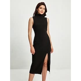 Women's Black Dress Sleeveless High Slit Dress High Neck Midi Party Dress > Shop > Clothing > Dresses > Party Dresses