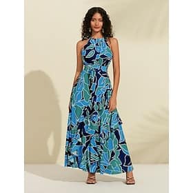 Women's Chiffon Dress Maxi Dress Blue Purple Sleeveless Floral Ruffle Printing Spring Summer Round Pattern Dress XS S M > Shop > Clothing > Dresses > Print Dresses