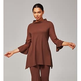 Women's Coffee Brown Chiffon-Modal Slim-Fit Blouse with Sheer Sleeves Elegant Lightweight Breathable Office Dinner Date > Shop > Clothing > Tops > Blouses