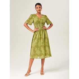 Women's Elegant Dress Green Short Sleeve Jacquard Jacquard Spring Summer V Neck Elegant Dress Vacation Date S M L > Shop > Clothing > Dresses > Casual Dresses