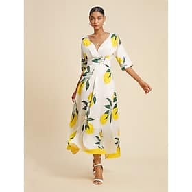 Women's Hem Maxi Satin Maxi Maxi Dress Yellow Half Sleeve Fruit Print Spring and Summer V Neck Dresses Vacation S M L > Shop > Clothing > Dresses > Print Dresses