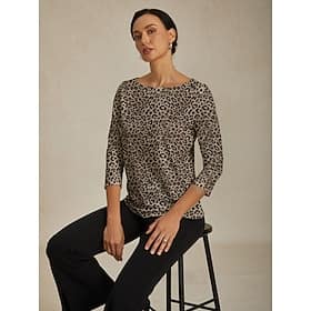 Women's Leopard Print Top – Elegant Round Neck Three-Quarter Sleeve Blouse, Stretchy Slim Fit Casual Shirt for Work, Daily, and Evening Outfits > Shop > Clothing > Tops > Blouses