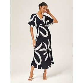 Women's Satin V-Neck Flutter Sleeve A-Line Dress Abstract Print Casual Outings Brunch Dates Daily Wear > Shop > Clothing > Dresses > Maxi Dresses