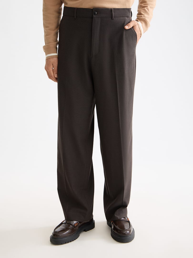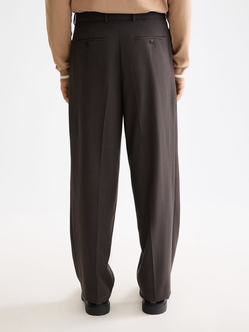 Baggy-fit chinos in a yarn-dyed wool blend, balancing comfort with refined edge.